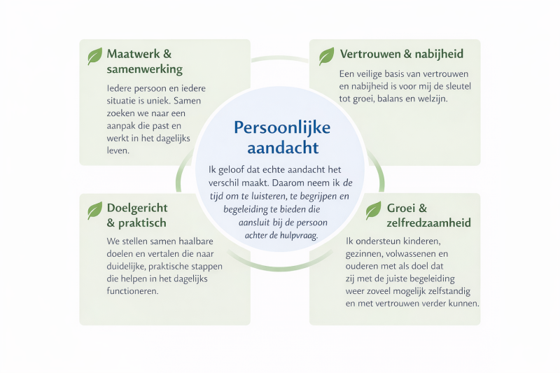 Deze punten vormen de basis van hoe ik werk.